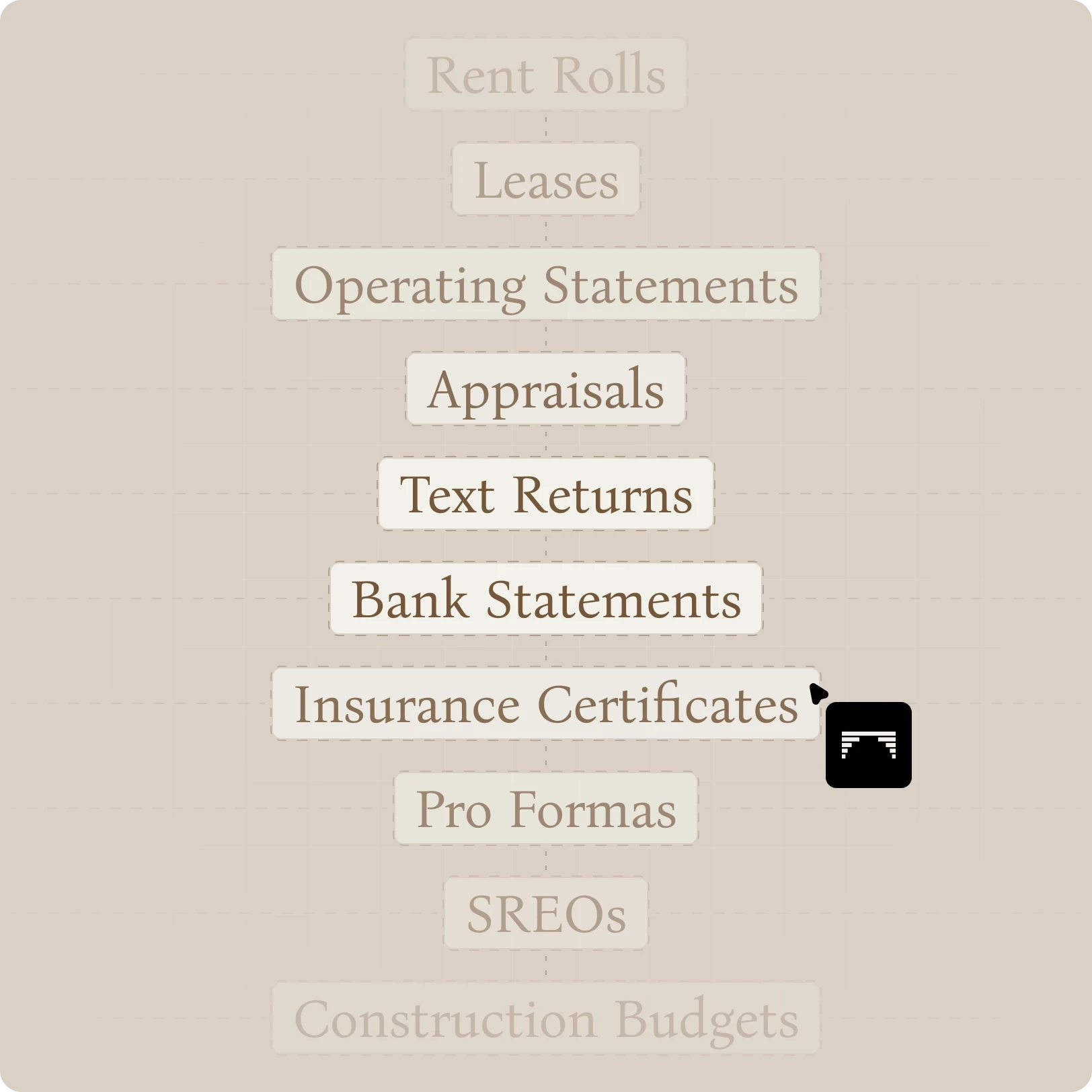 Extract and standardize data directly into your custom Excel underwriting models or LOS. Zero re-keying.