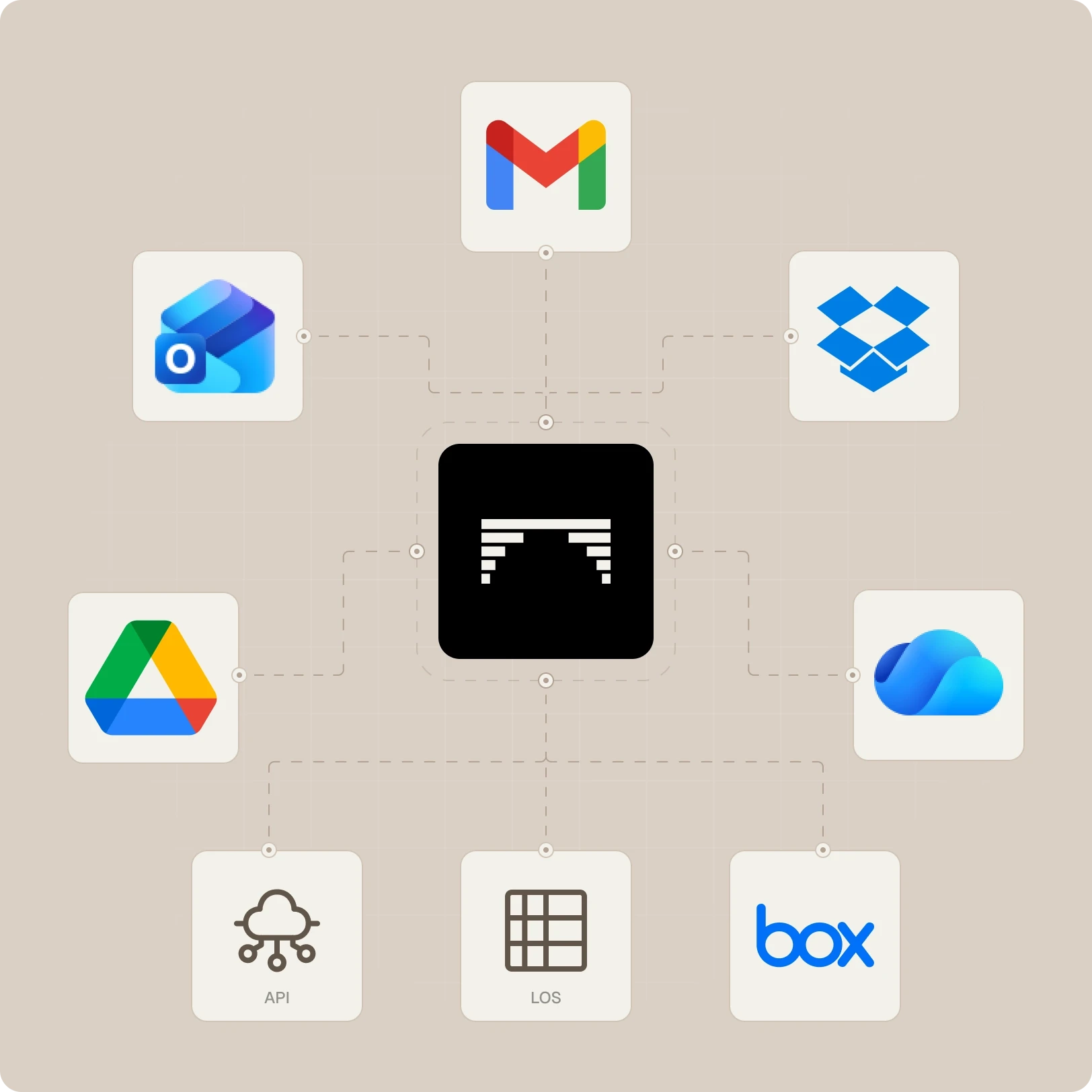 Connects to your LOS, cloud storage, email, and data systems. Outputs sync directly into your system of record.